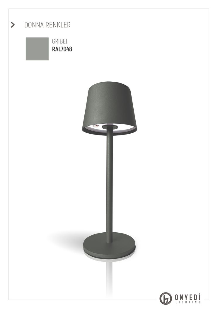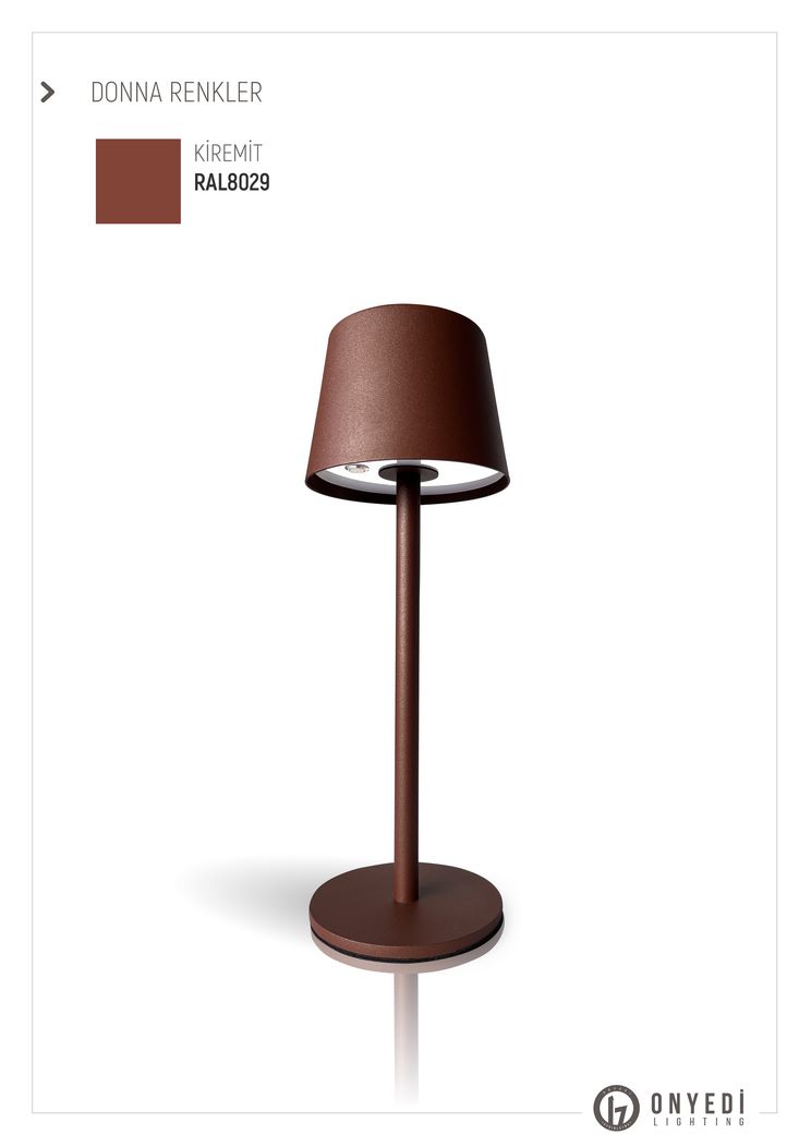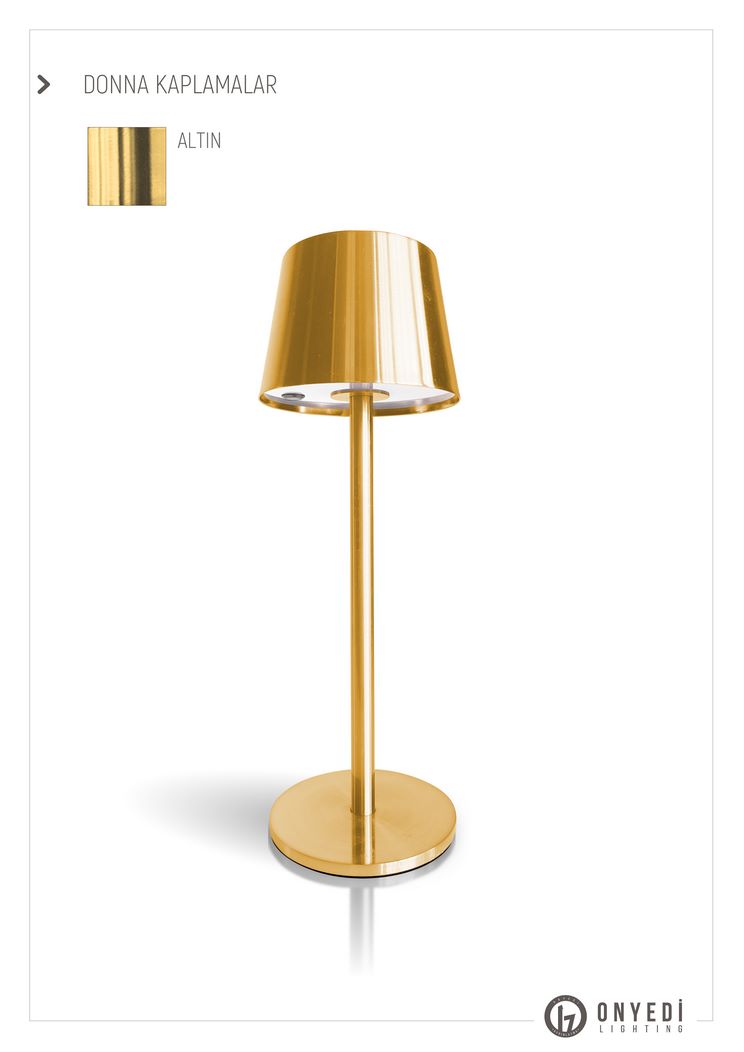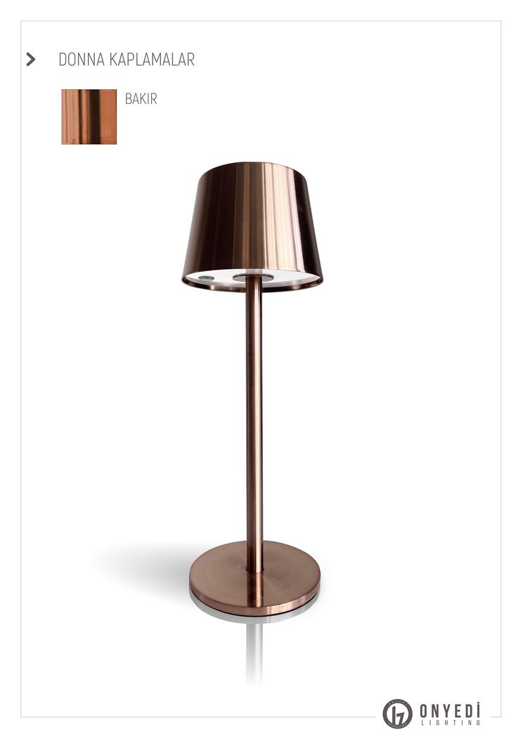 Donna şarjlı masa lambası 4400mah lityum ion bataryası ve 2.2Watt Samsung 2700Kelvin Led 200 lumen ışığı ile ihtiyacı gidermektedir. 3 kademeli dim edebilirsiniz. 1. kademe de 13 saat, 2.kademe de 19 saat ve 3.kademede 30 saat yanmaktadır. Toplu şarj istasyonu sayesinde 18, 24, 32, 40li gruplar halinde tek seferde şarj edebilirsiniz. Renk seçenekleri ve kaplama seçenekleri bulunmaktadır. Şarj masa lambası modellerimizin hepsi 3 yıl garantilidir. Opsiyonel olarak rgb ışık renkleri ve uzaktan kumanda özelliği eklenebilmektedir.