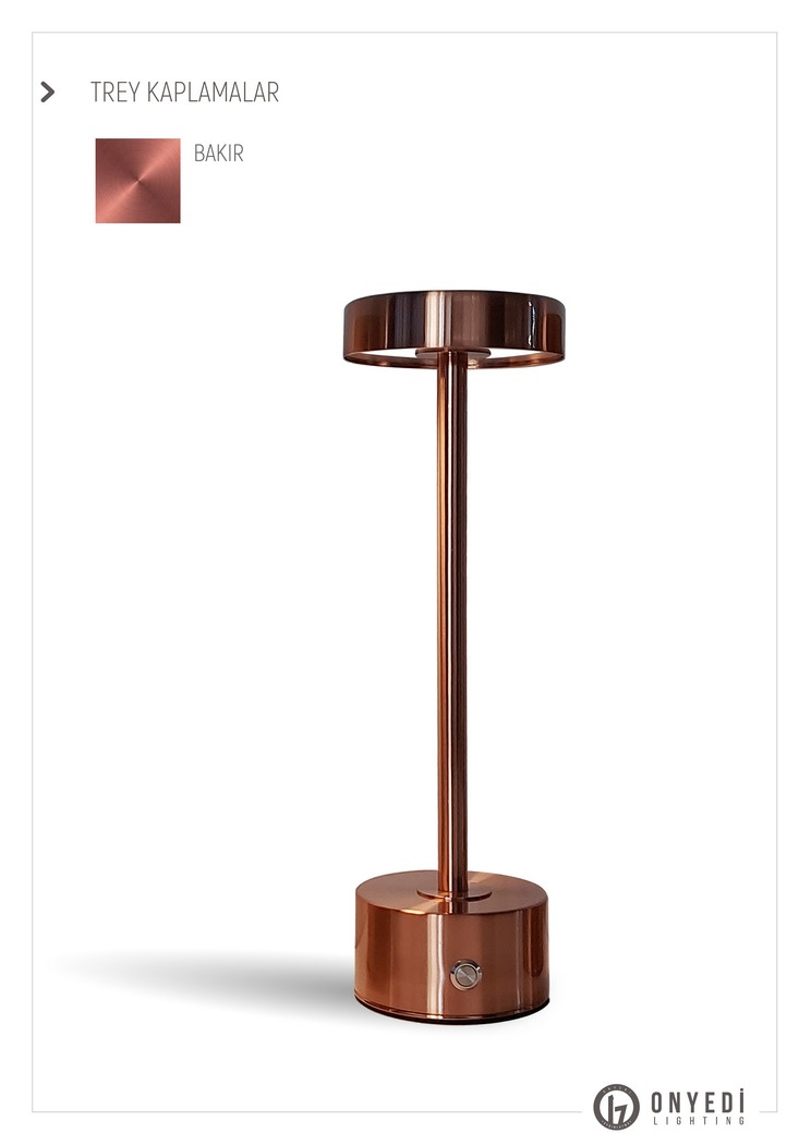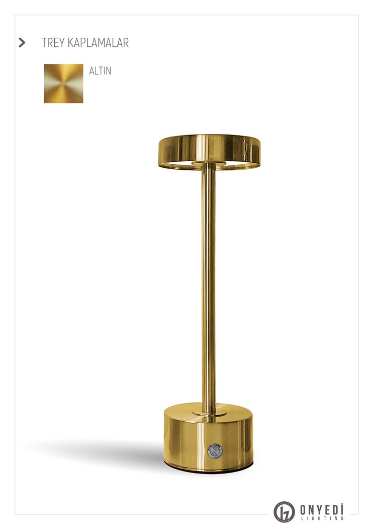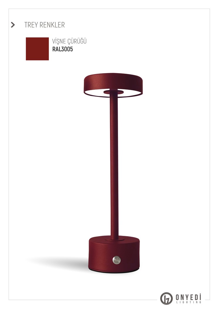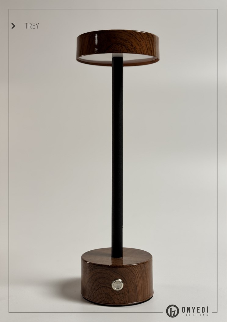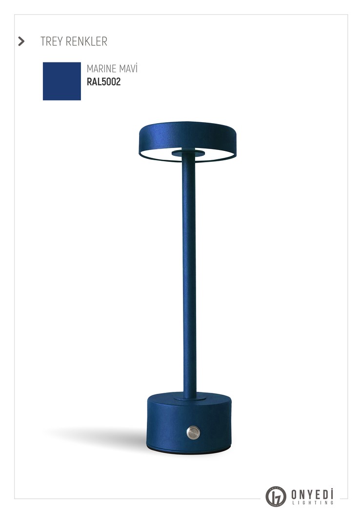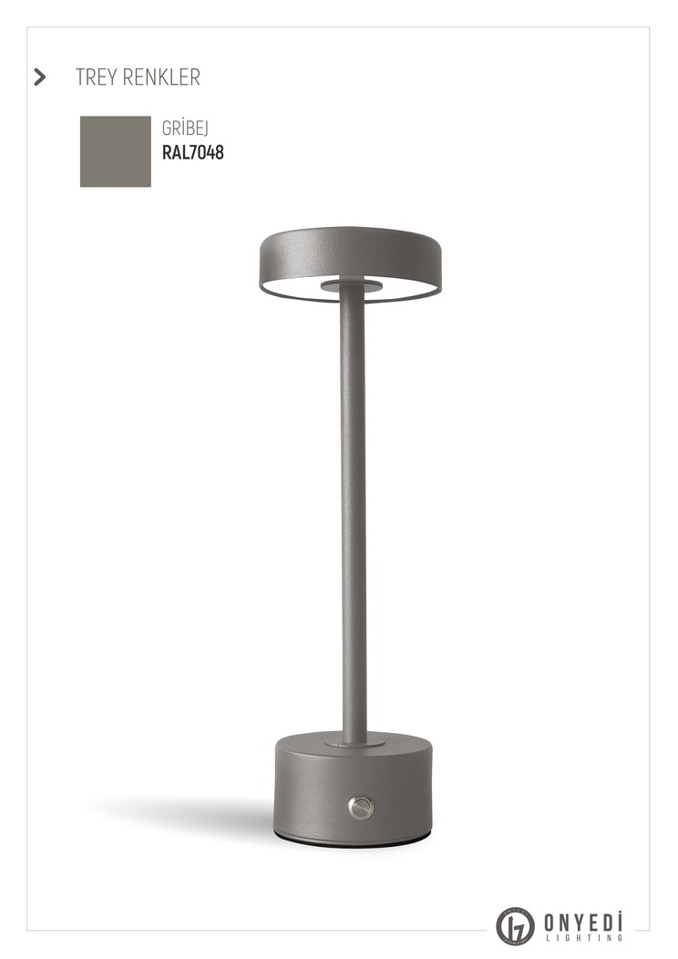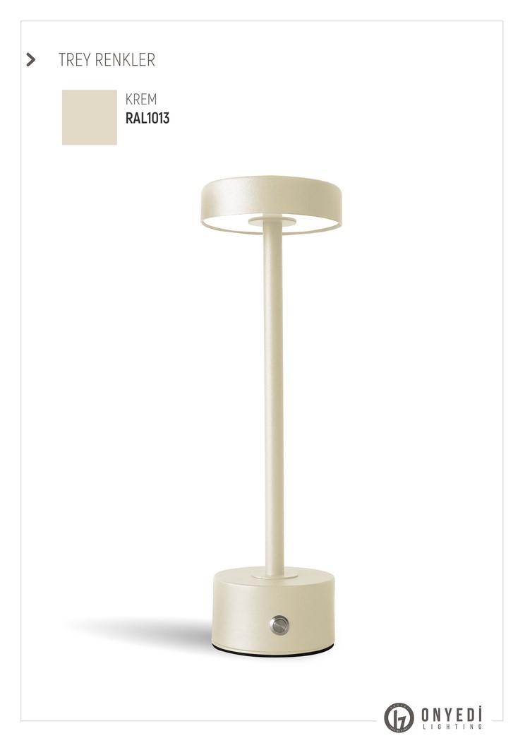 Firmamızın tasarım tescilli ürünü olan Trey şarjlı masa lambası 4400mah lityum ion bataryası ve 2.2Watt Samsung 2700Kelvin Led 200 lumen ışığı ile ihtiyacı gidermektedir. 3 kademeli dim edebilirsiniz. 1. kademe de 13 saat, 2.kademe de 19 saat ve 3.kademede 30 saat yanmaktadır. Toplu şarj istasyonu sayesinde 18, 24, 32, 40 ve 50 li gruplar halinde tek seferde şarj edebilirsiniz. Renk seçenekleri ve kaplama seçenekleri bulunmaktadır. Şarjlı masa lambası modellerimizin hepsi 3 yıl garantilidir. Opsiyonel olarak rgb ışık renkleri ve uzaktan kumanda özelliği eklenebilmektedir.